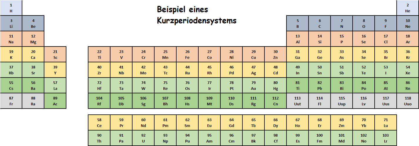 Das Kurzperiodensystem (bzw. „Mittellangperiodensystem“):