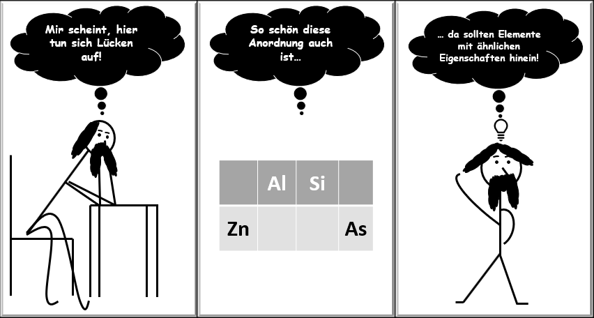 Mendelejew beispielsweise war mit diesem PSE sogar in der Lage, die Existenz und die Eigenschaften von (damals noch nicht entdeckten) Elementen vorherzusagen, weil sich aufgrund von Lücken im System auf diese schließen ließ.