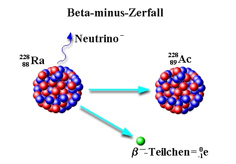 Beim β-Zerfall handelt es sich um eine Strahlung, die beim radioaktiven Zerfall von Atomkernen auftreten kann. Beta-Strahlung ist eine Teilchenstrahlung. Ein Atomkern sendet Elektronen β- oder Positronen β+ aus (Abb. 4).