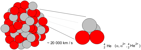 Beim α-Zerfall handelt es sich um eine Strahlung, die beim radioaktiven Zerfall von Atomkernen auftreten kann. Alpha-Strahlung ist eine Teilchenstrahlung. Ein Atomkern sendet Helium-4-Atomkerne aus (Abb. 1).