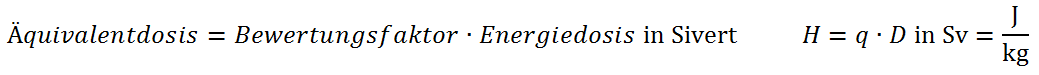 Wirkung: α-Strahlung, die von außen auf z.B. die Haut einwirkt, ist relativ ungefährlich, da sie von der oberen Hautschicht absorbiert wird. Problematisch wird es hingegen bei eingelagerten (sprich inkorporierten) α-Teilchen, was z.B. durch Einatmen geschehen kann. Hier wirkt die Dosis auf kleinem Raum, also konzentriert. Ihr Strahlenwert ist auf 20 festgelegt (Beta- und Gamma-Strahlung auf 1).
