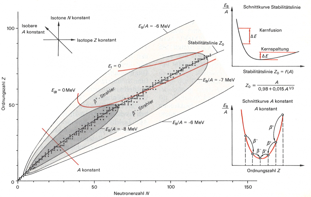 Abb. 8: Nuklidekarte (stabile Nuklide eingezeichnet) [HerMarSto1997, S. 569]