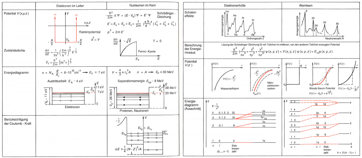 Abb. 11: Analogie zwischen Elektronen im Metall und Nukleonen im Kern und Elektronenhülle und Atomkern [HerMarSto1997, S. 570/571]